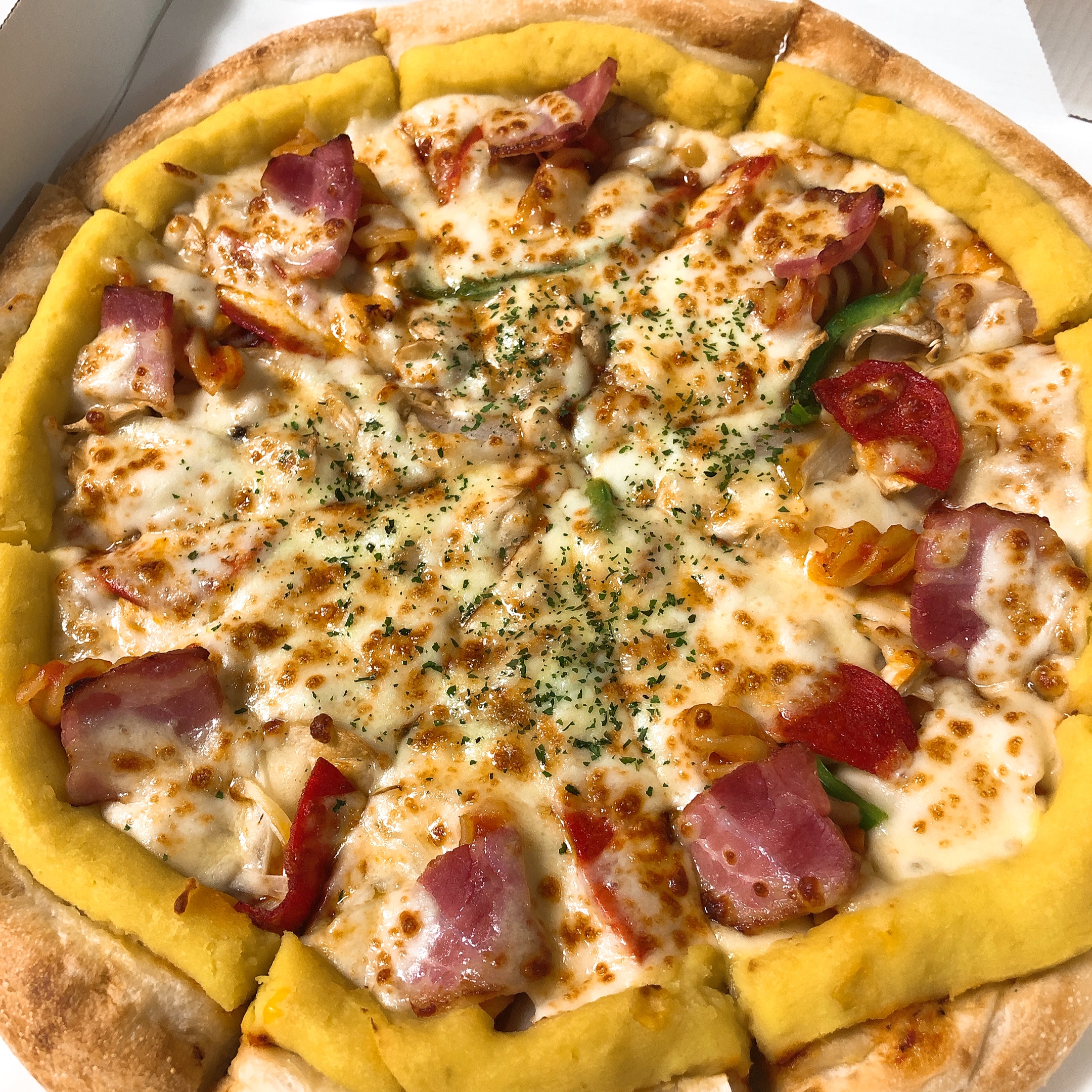 피자 도우가 그렇게까지 두꺼운 편은 아닙니다. 그렇다고 엄-청 얇아서 흐물흐물 거리는 건 아닌데, 그래도 조금 얇은 편 ! 에 속한다고 봐야 되겠네요. 그리고 치즈가 상당히 풍부하게 들어가 있어요. 네, 몰랑몰랑(?) 한 느낌이 많이 들었습니다 _< 몰랑몰랑 ? 포근포근 ? 무튼 그런 느낌이라 저는 개인적으로 더 맛있었고요. 저 끝 쪽에 들어가있는 고구마 ~ 너무 좋잖아 ~