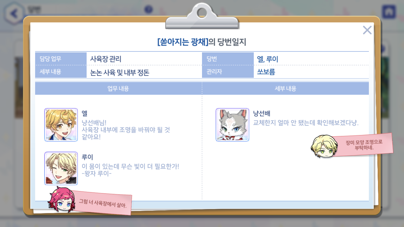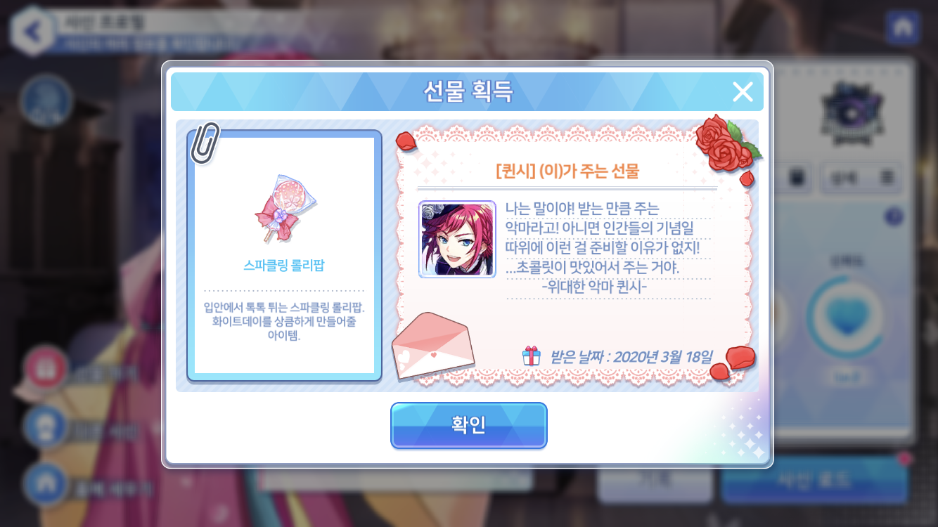 이제 저의 최애 조 '새벽조'는 모두가 선물을 받았구요 _< 슬슬 다른 사신들도 주어야 할텐데. . . 한 명 한 명에게 사탕들을 받아내보기로 다짐합니다. 이 다짐이 언제까지 갈지는 잘 모르겠지만 ?
